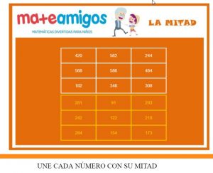 – De esta manera se quiere conseguir que cuando quiera calcular la mitad de un número de 3 cifras como pueda ser el 472, lo haga primero calculando el mitad de cada una de las unidades. De esta manera calculará el mitad de 400, el de 70 y el de 2 por separado para luego juntar todas las cantidades: 200 + 35 + 1 = 236