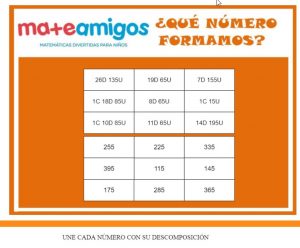 Seguimos trabajando numeración, en este caso hasta el 600. Para ello hacemos ejercicios como los anteriores ya que conocen la dinámica y les resultará más fácil.