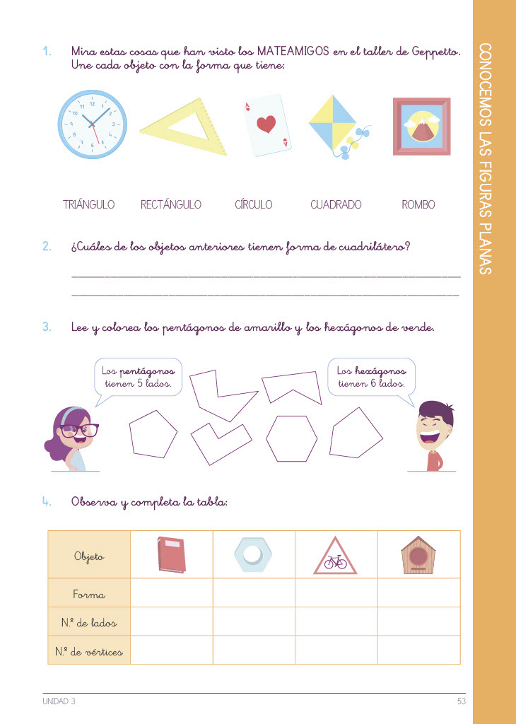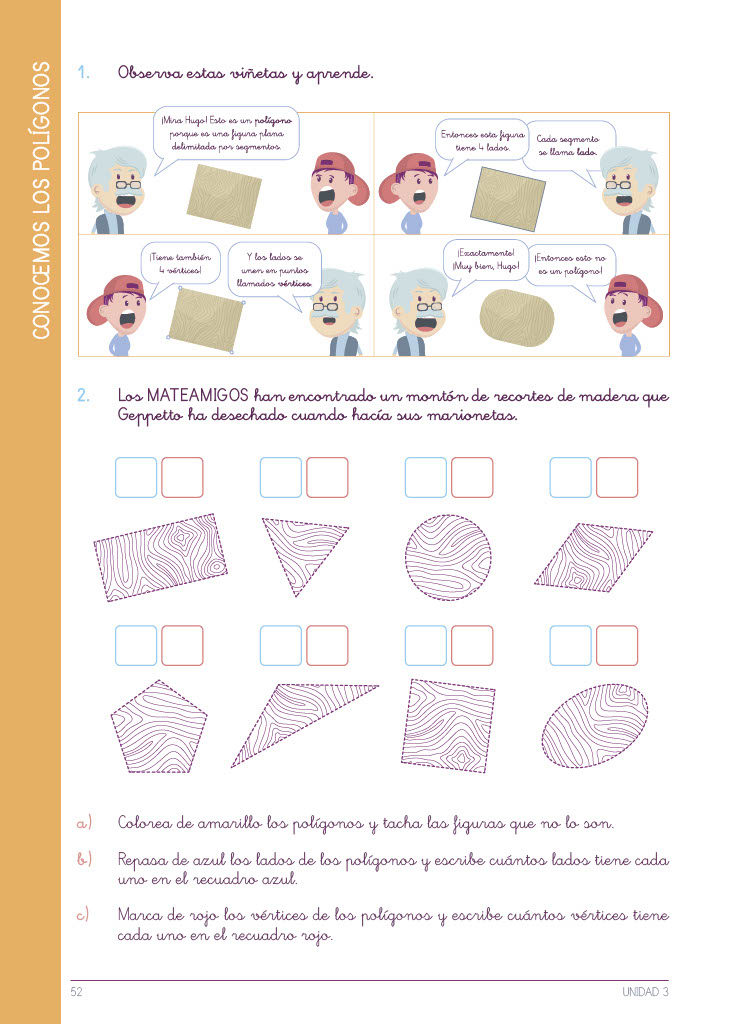 – Para trabajar la primera parte de los polígonos sería conveniente llevarse objetos o bien que tengamos en clase o traerlos de casa para mostrarlos y que vayan diciendo cuáles son polígonos y cuáles no.