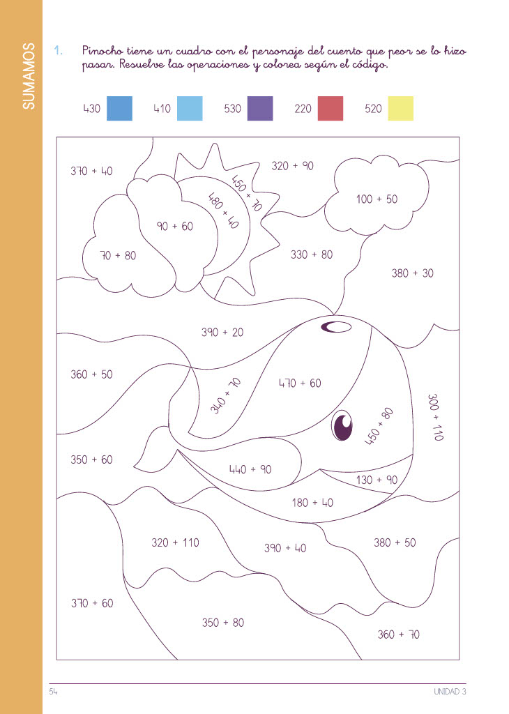 – En esta página estamos sumando números de 3 cifras formado por decenas completas como por ejemplo 270 con decenas completas como 80.