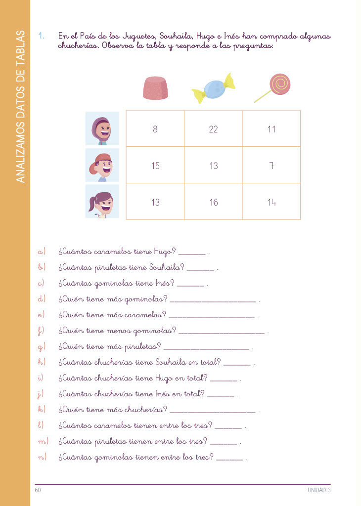 – Para trabajar las tablas de doble entrada se puede hacer una en clase sobre los almuerzos que han traído o sobre cómo van vestidos para posteriormente ir realizando preguntas sobre los datos obtenidos.