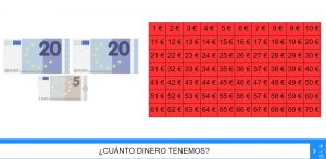 Con dinero ficticio podemos decir que cojan por ejemplo 3 billetes de 10 euros, 2 de 5 euros y 4 monedas de 1 euro para terminar preguntando ¿cuánto dinero tenemos?