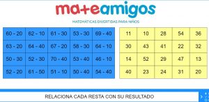 – Resolver diferentes restas con ayuda de la tabla. En las restas el sustraendo debe estar compuesto por decenas completas (47 – 30 = __) y debemos preguntarles a qué número llegaríamos.