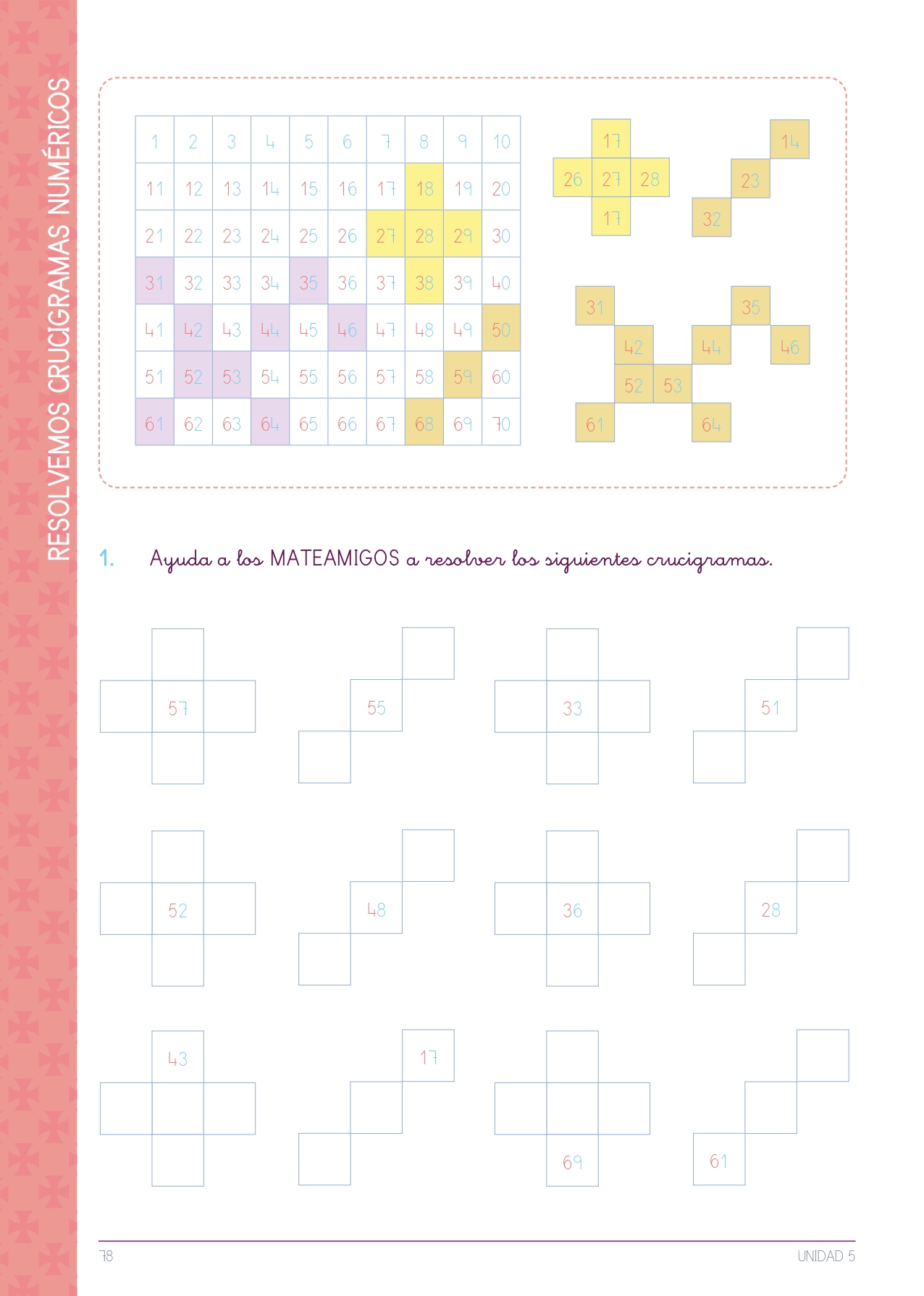 Para resolver estos crucigramas necesitarán disponer de la tabla y poco a poco habrá que intentar retirarla para que resuelvan ejercicios de crucigramas sin necesidad de ella.