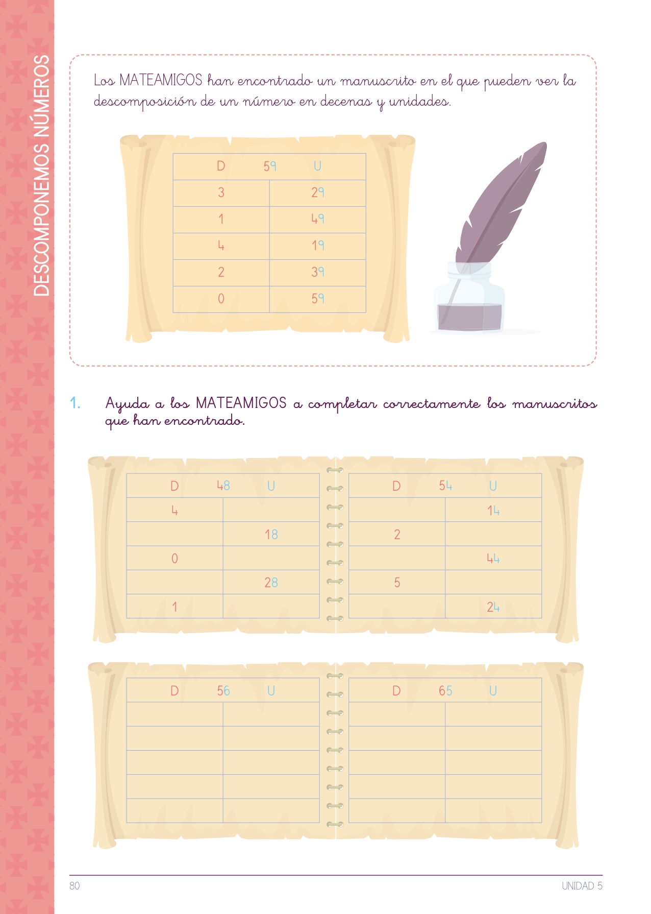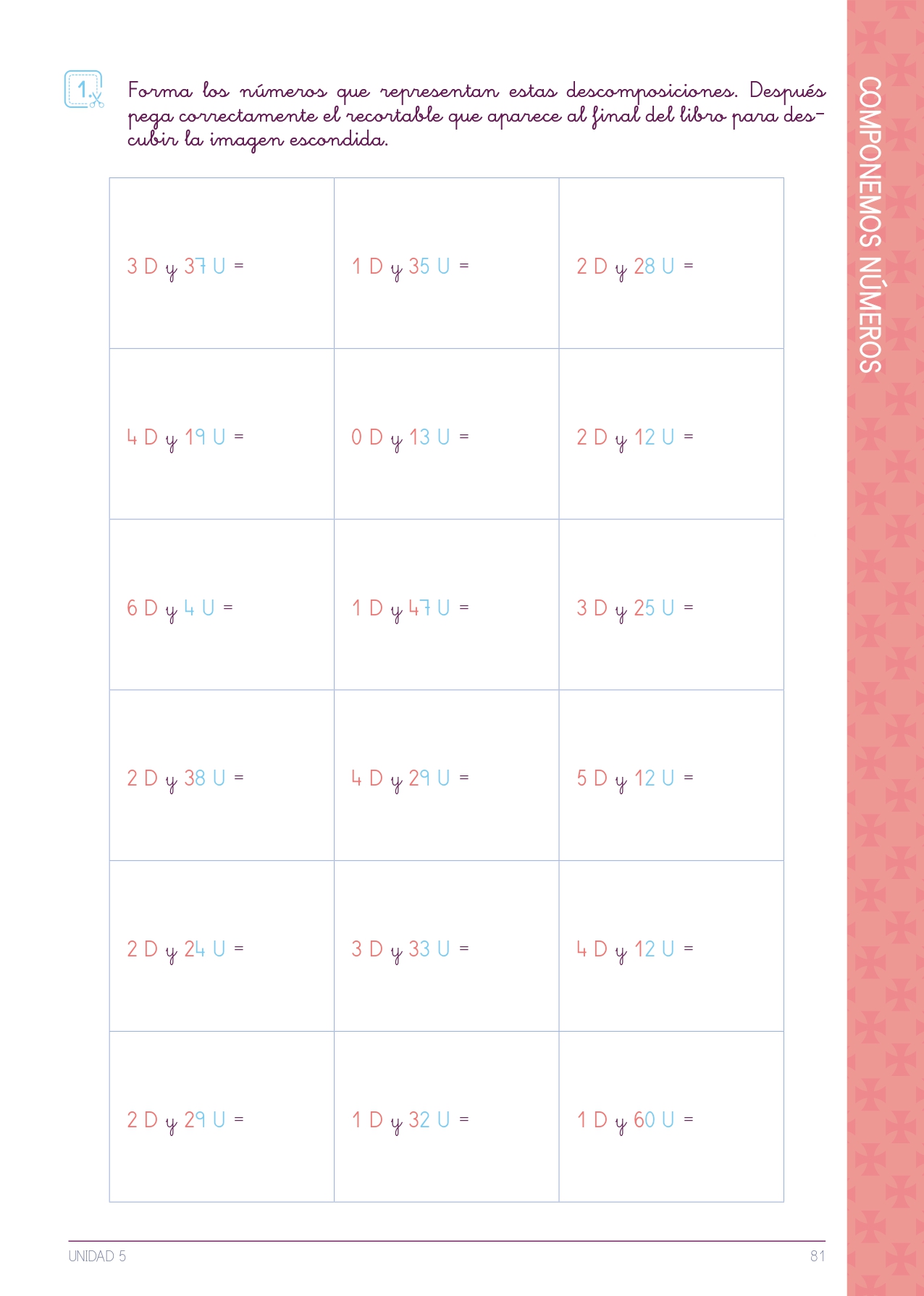 Comenzamos a descomponer en decenas y unidades y para ello podemos utilizar estas 3 actividades previas: