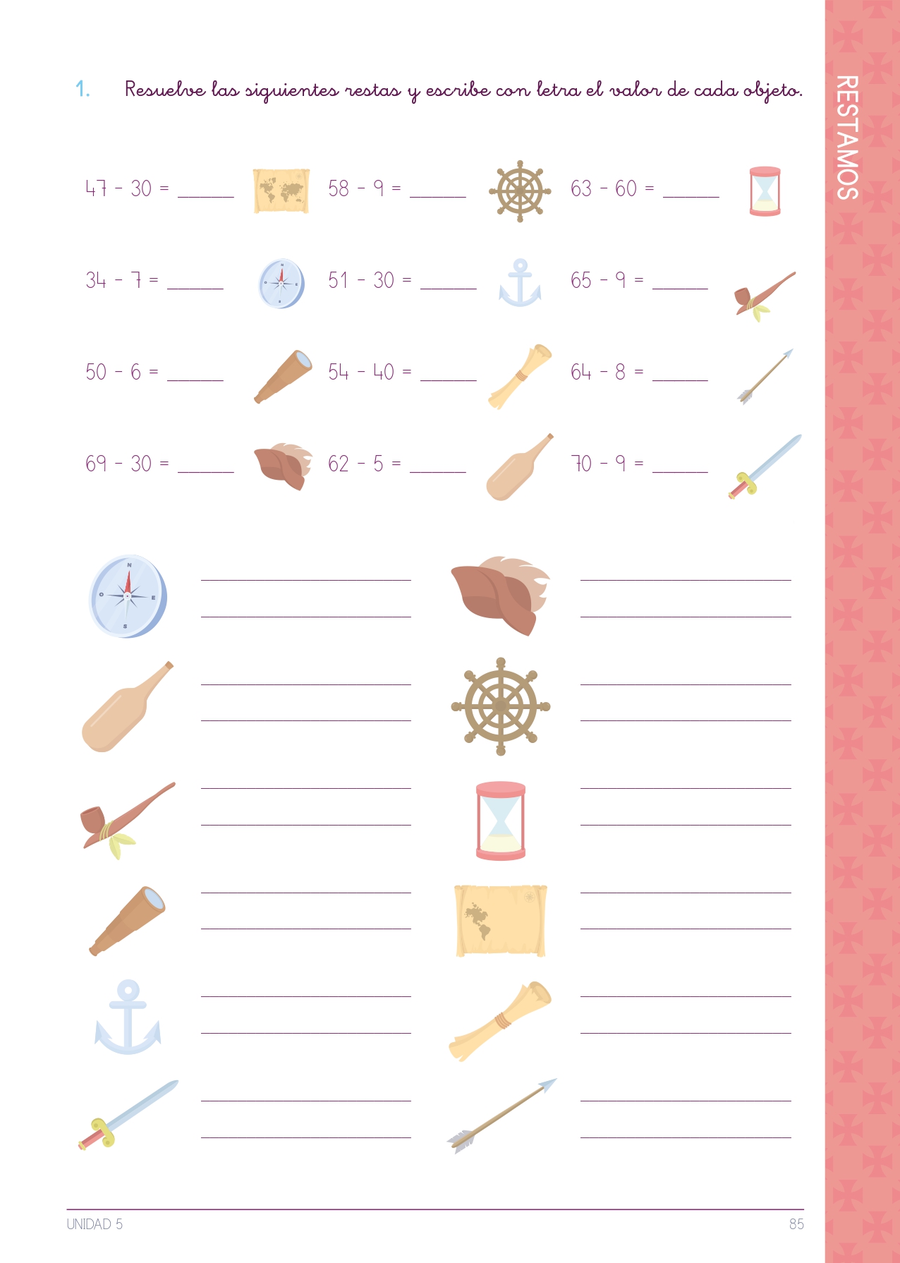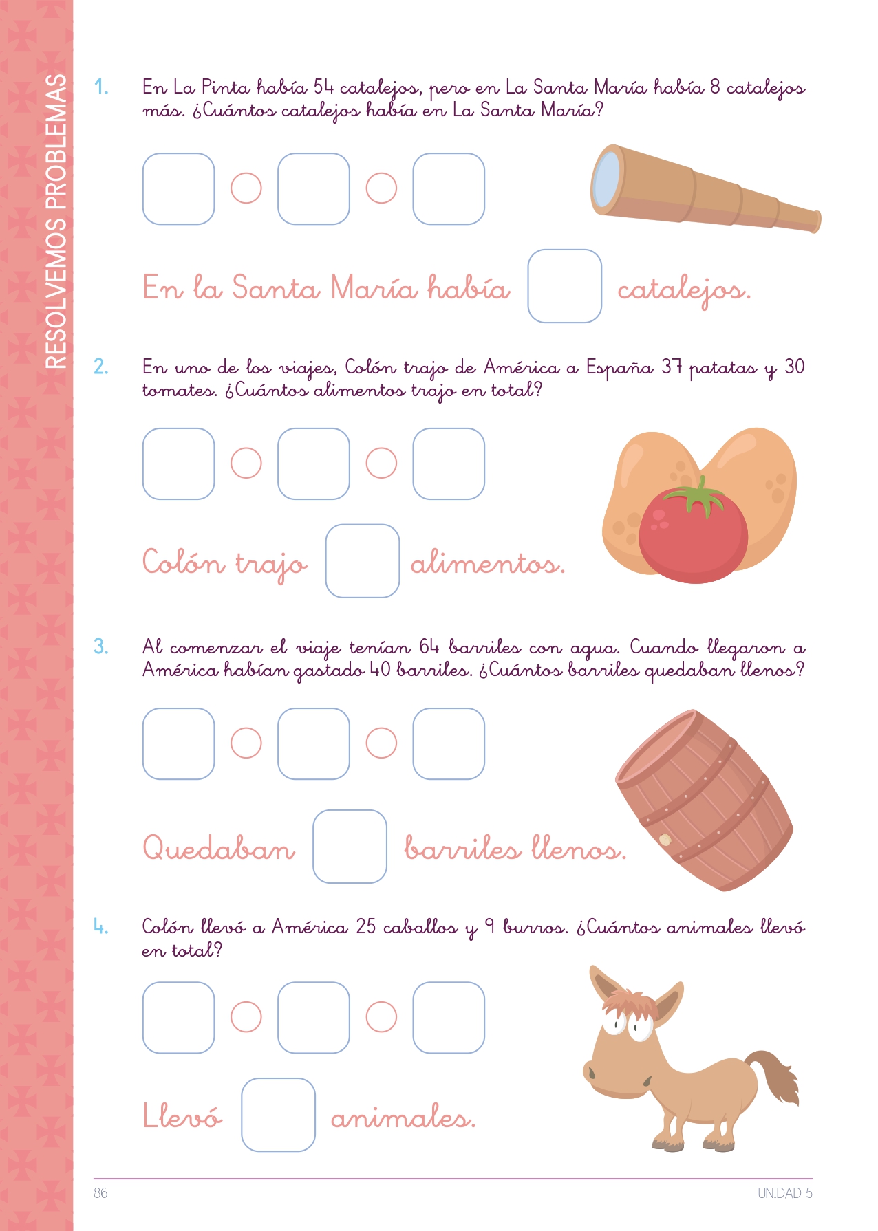 Por último, en la actividad 4, se da una resta para que los alumnos escriban y resuelvan partiendo desde cero un problema. En este caso, la única tipología de resta que los alumnos han trabajado hasta el momento es CA2.