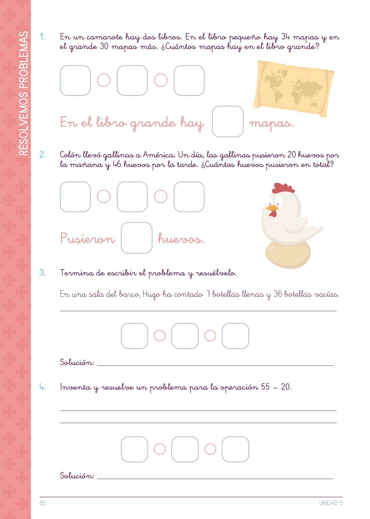 En la actividad 3 se propone la invención de un problema. Para ello, se ofrece la primera parte del problema y los alumnos tendrán que escribir la pregunta y resolverlo.